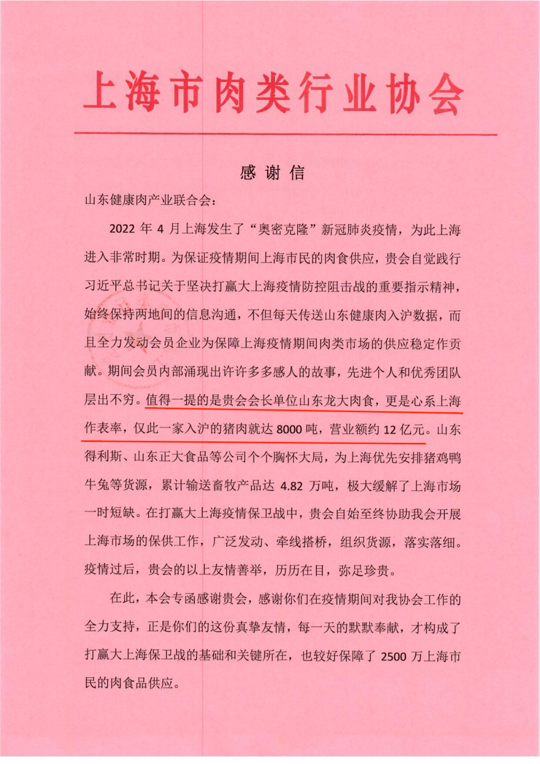 7ÔÂ20ÈÕ£¬ÉϺ£ÊÐÈâÀàÐÐҵЭ»áÏòɽ¶«¿µ½¡È⹤ҵÍŽá»á·¢À´Ð»Ð»ÐÅ£¬Ð»Ð»É½¶«¿µ½¡È⹤ҵÍŽá»áÔÚÒßÇéʱ´úΪ°ü¹ÜÉϺ£ÊÐÃñµÄÈâʳ¹©Ó¦Ëù×ö³öµÄÆð¾¢ÓëТ˳¡£Ð»Ð»ÐÅÖÐÌØÊâÌáµ½£¬vwinµÂÓ®ÍøÒ³°æÃÀʳ×÷Ϊɽ¶«¿µ½¡È⹤ҵÍŽá»á»á³¤µ¥Î»£¬ÐÄϵÉϺ£×ö¿¬Ä££¬ÒßÇéʱ´úÈ뻦Èâʳ´ï8000¶Ö£¬ÎªÉϺ£Êп¹Òß±£¹©×ö³öÁËÖ÷ҪТ˳¡£